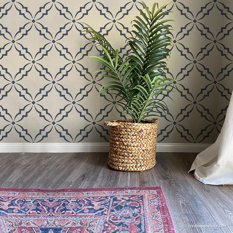 Modern stencils like the Adeline Trellis Stencil make it easy to decorate a feature wall with a wallpaper pattern... without the wallpaper. Stencils for walls and stencils for floors use only paint to create the custom decor you want!