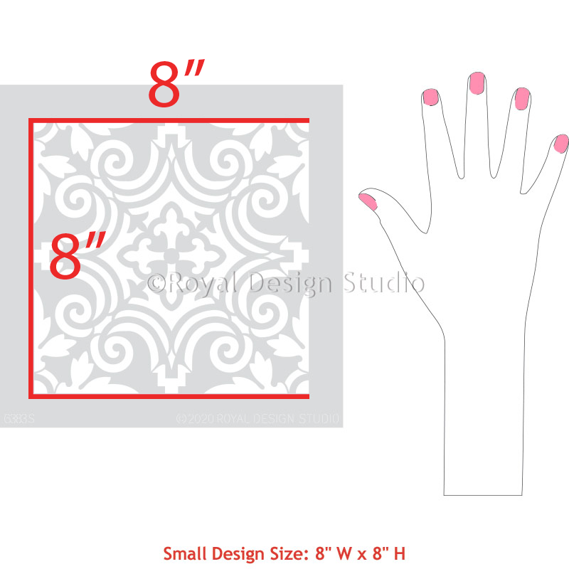 Small Stencil Pattern Sizes: 8"w x 8"hSmall Stencil Sheet Sizes: 10"w x 10"h