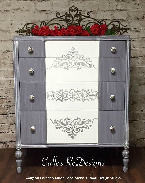 Decorate and stencil an entire ceiling in your dining room, living room, or entry way with the Avignon Corner Ceiling Stencils. Take advantage of your room's fifth wall using elegant corner medallions in ceiling stencils to play up your room's architectural features. For a complete coordinated ceiling design, use the Avignon Ceiling Stencil Set that includes corner, medallion, and border ceiling stencils.