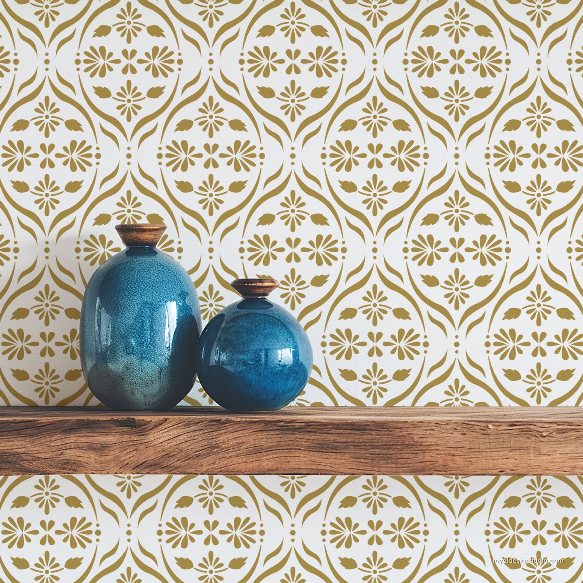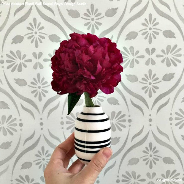 Create an modern or retro indoor garden oasis with our flower trellis wall stencil. Available in three varied sizes, the large and medium Chloe Floral Trellis wall stencil is also ideal for ceiling or floor applications. The small floral trellis is perfect for DIY crafts or furniture stenciling projects and can be found here: Chloe Floral Trellis Furniture Stencil