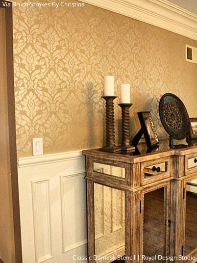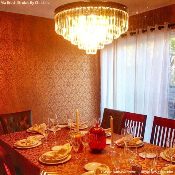 This Classic Damask Wall Stencil is one of our most popular stencil patterns! All of our allover and damask stencil patterns feature an easy stencil registration system, allowing you to repeat these stencils across your wall perfectly every time.