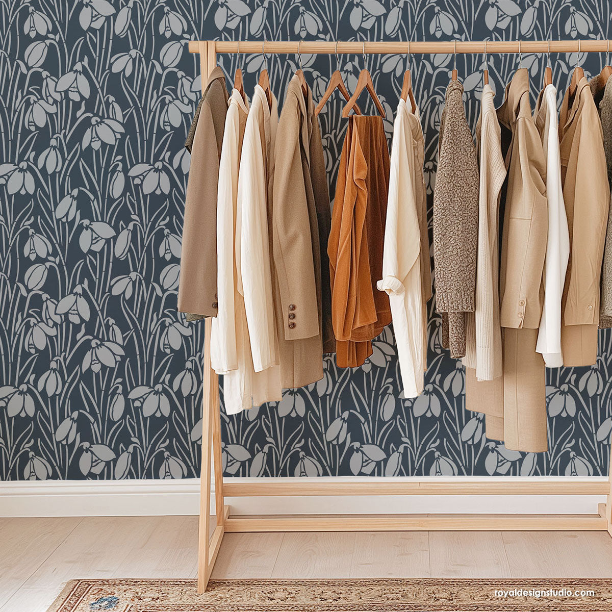 The Crocus Bloom is a popular motif used in Art Nouveau design. Our interpretation of the Crocus Flower in this detailed wall stencil pattern honors that tradition with a modern touch. Try stenciling it on trendy dark moody colors, or lighten it up using pastel colors for the pattern over a cream colored wall. Stenciling offers so many more options than wallpaper as your color choices are limitless!