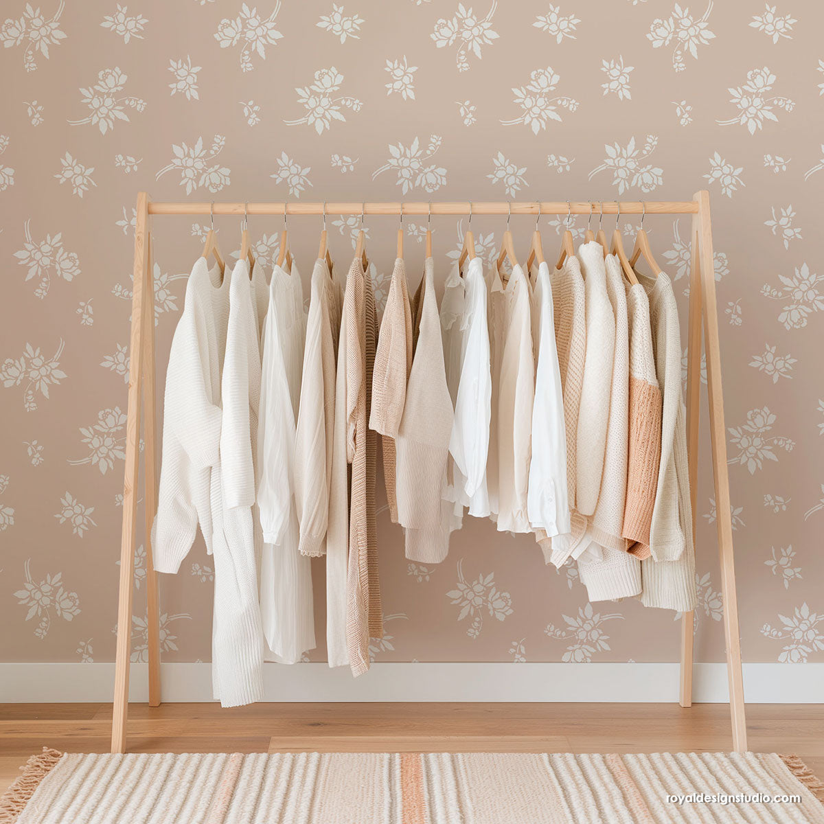 Romantic and Cottage Core florals are always on trend and our Field Flowers Floral Wall stencil is perfect for celebrating Spring any time of the year. Large and small floral sprays dance across your wall in an easy-to-repeat stencil design that only LOOKS like custom wallpaper. Stencil this pretty pattern in the colors of your choice to brighten up a bedroom, bathroom or a sweet nursery setting.