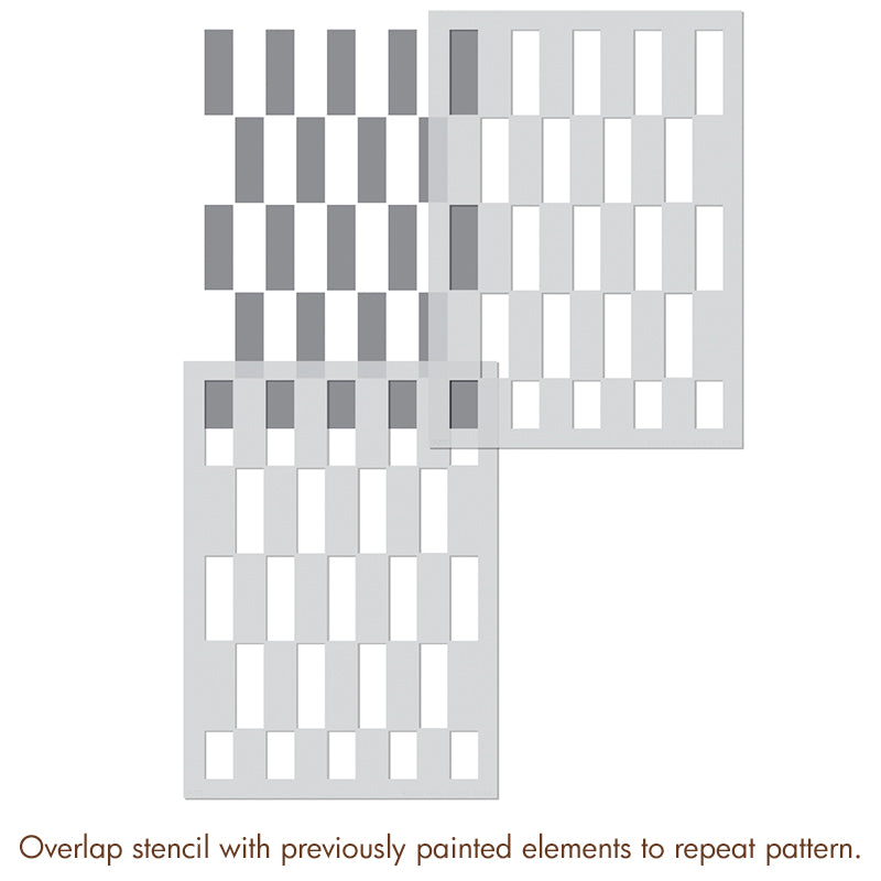 Use this versatile new, modern tile stencil pattern to create a one-of-a-kind wall stenciling treatment on kitchen and bathroom walls. You can stencil this design vertically or horizontally, and introduce multiple stencil paint colors for more customization.