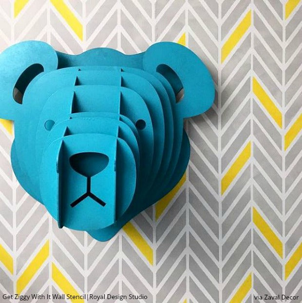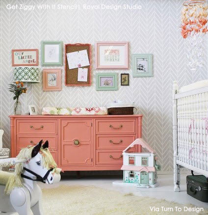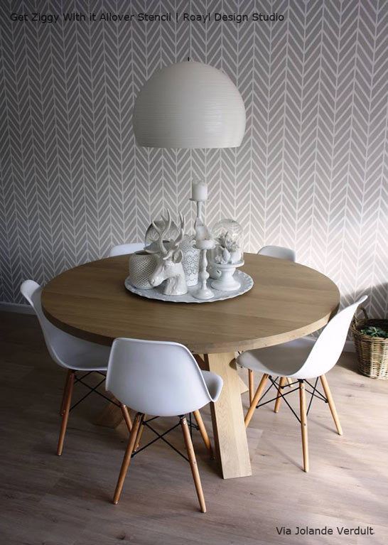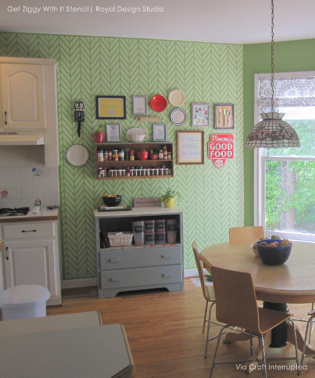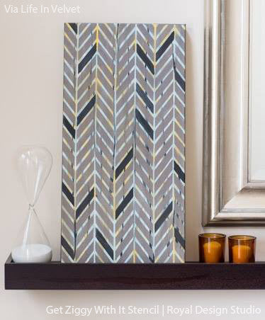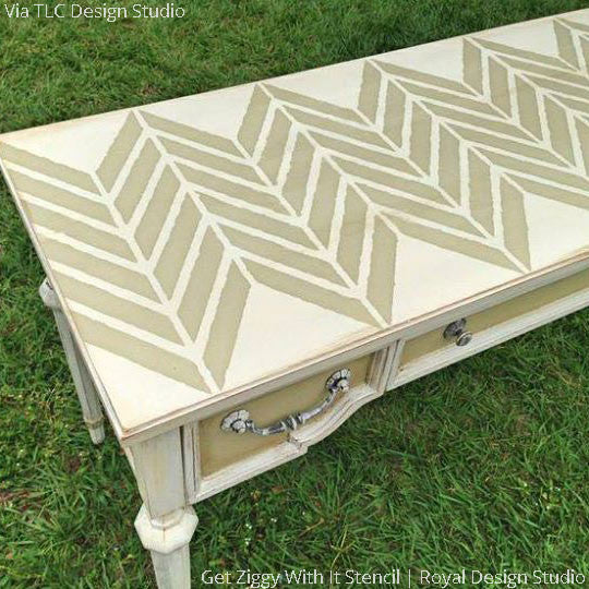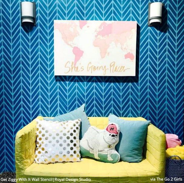 Hip and happening! This classic and cool herringbone pattern stencil comes in 2 sizes for stenciling on both walls and furniture. Stencil our Get Ziggy With It Wall Stencil in a single color, or use two shades of a similar paint color to create a subtle and stunning dimensional look. For more similar styles, check out the Braided Herringbone Stencil, Herringbone Pattern Wall Stencil, and Herringbone Shuffle Stencil.
