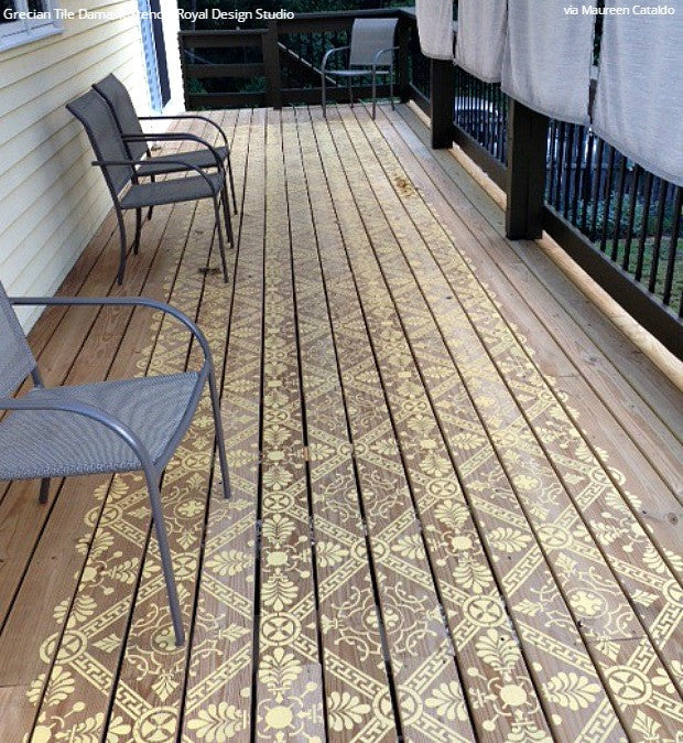 Imagine yourself on a Greek Island as you stencil our Grecian Tile Damask Wall Stencil in your favorite space of relaxation. A geometric and art deco pattern consisting of quilt-like designs, this Allover Wall Stencil can be painted in tone on tone colors for a subtle effect, in a muted or contrasting color palette, or in a Metallic Finish using our Royal Stencil Crème Paints.