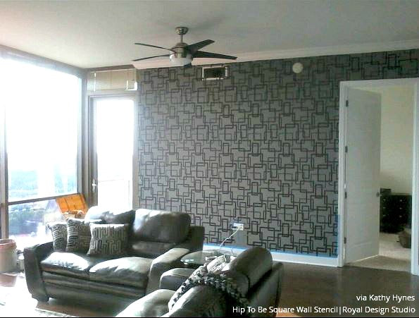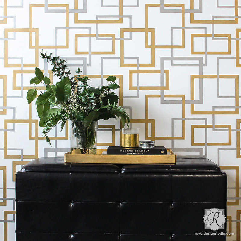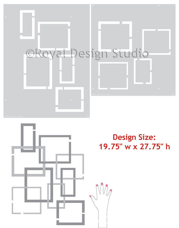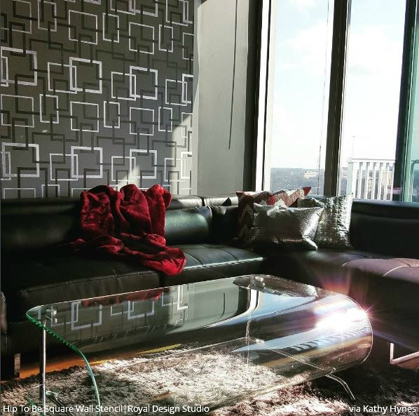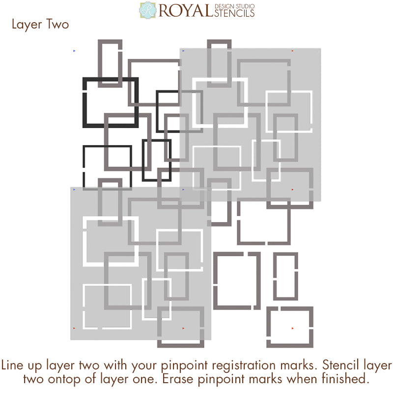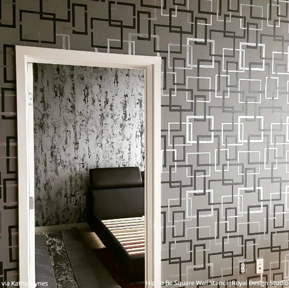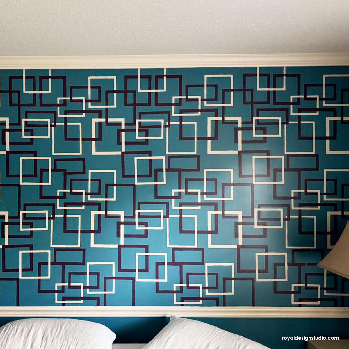 Create an allover wallpaper effect without ruining your walls with modern wall stencils! The geometric and overlapping squares of the Hip to be Square Allover Pattern Stencils creates a look of continuity. Use bright and bold colors for a nursery or little boy's bedroom!