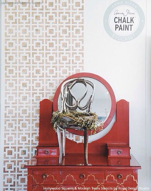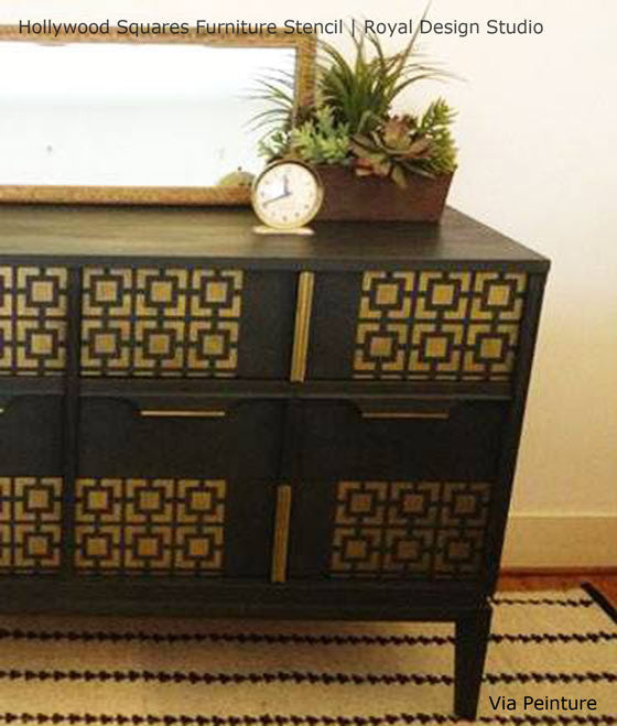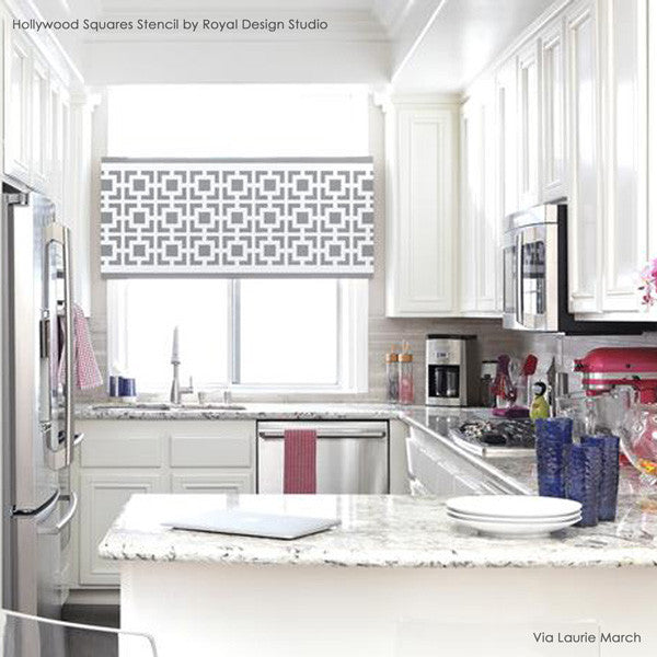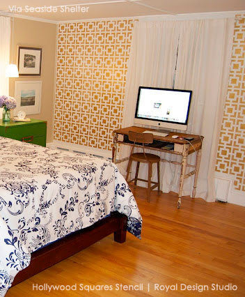 Add a retro Hollywood Regency feel to your wall decor with our geometric Hollywood Squares Wall Stencil. Our Modern series wall stencils are great for adding a fresh and funky twist to your wall, furniture, and fabric stenciling projects. These modern stencil patterns include whimsical florals, allover stencils, and border stencils. For your small DIY projects, check out our Hollywood Squares Craft Stencil.