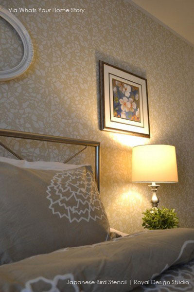 Japanese Birds Allover Wall Stencil