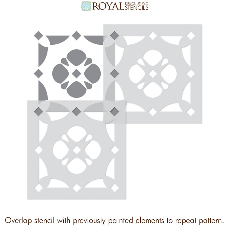 A touch of tile can make a dramatic impact... though it's simple to do! The Justine Tile Stencil can be painted onto walls, floors, and stairs with no experience necessary. It's the easy way to tile!