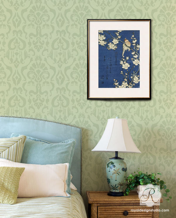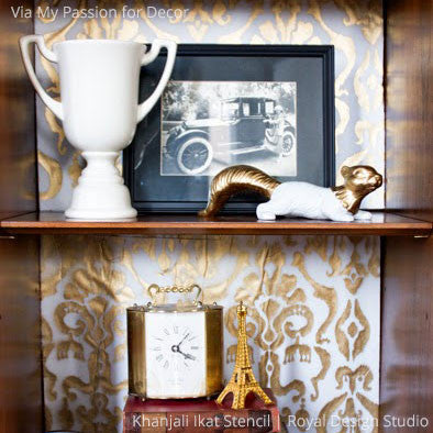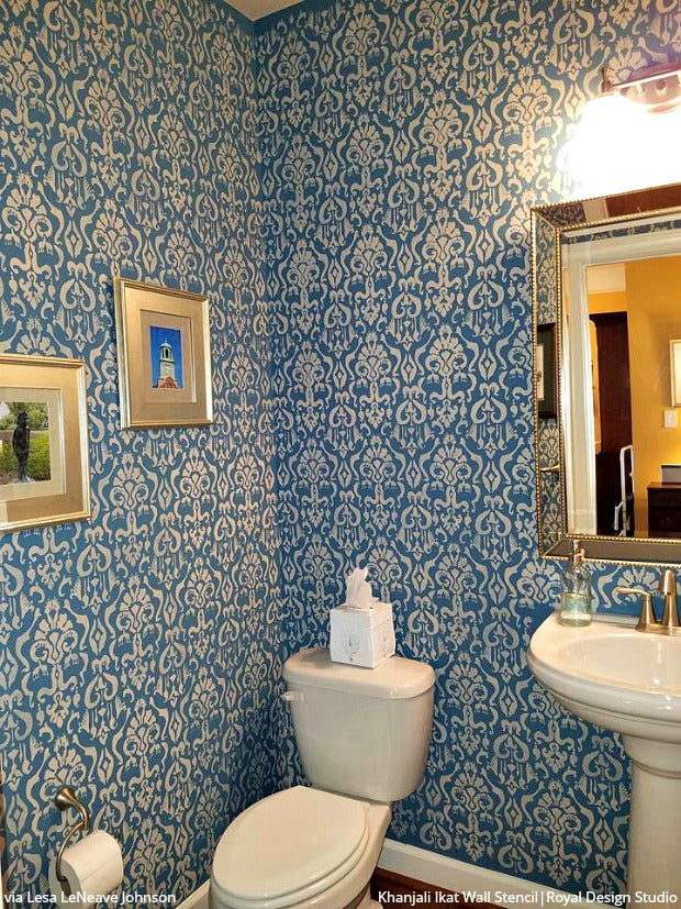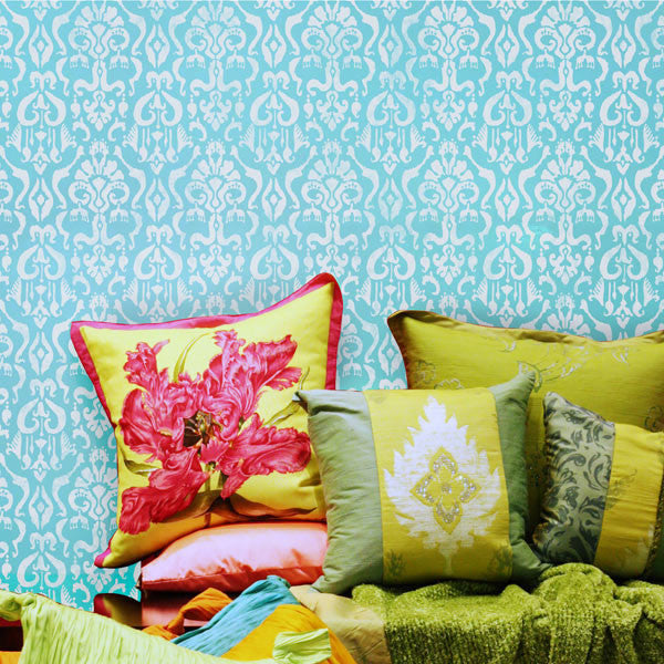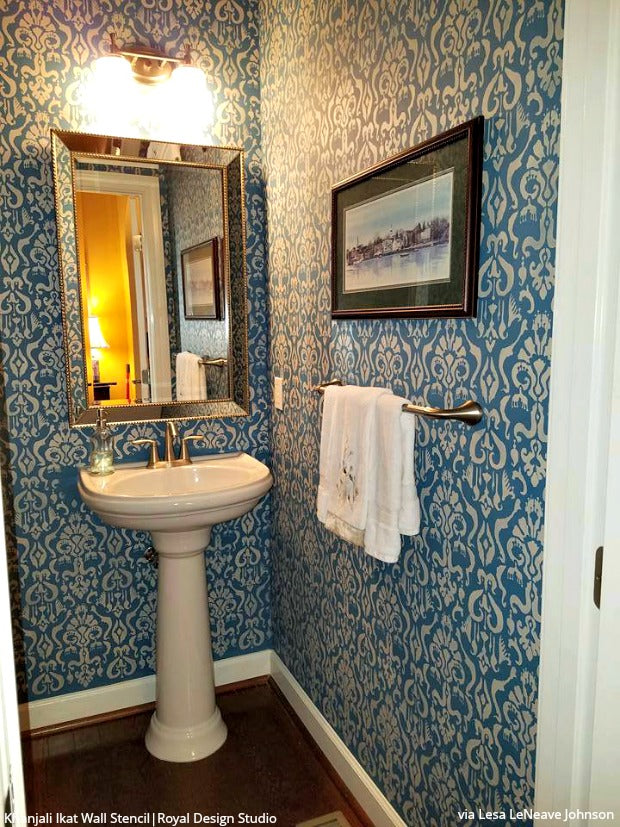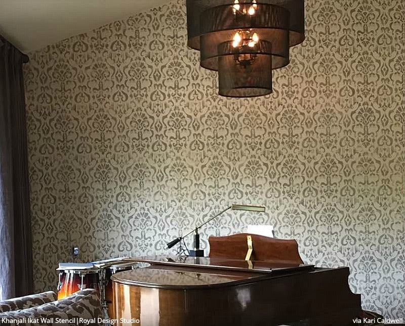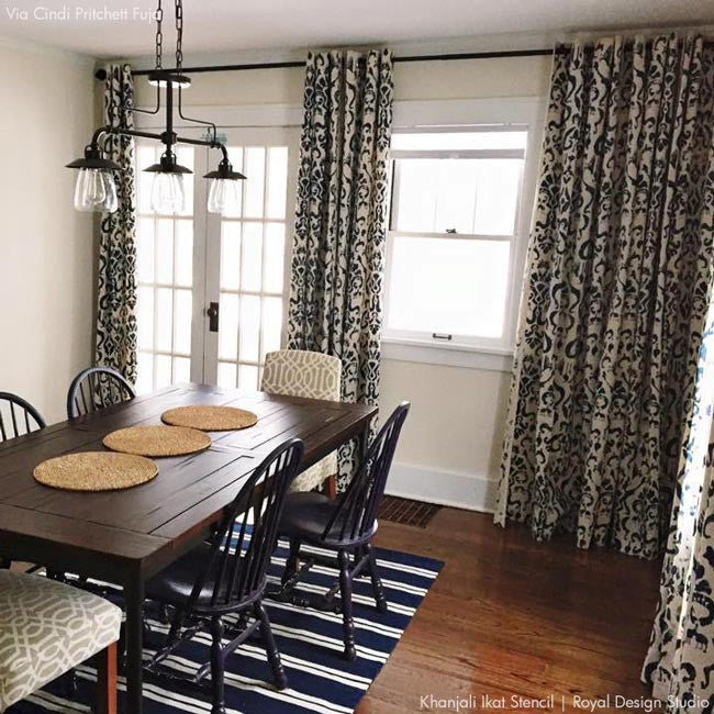 The Khanjali Ikat Stencil is an original, beautiful, lyrical Ikat stencil pattern that comes in 2 sizes and is ideal for adding a touch of global influence to both wall and furniture stencil projects. Whether you use this exotic pattern as wall stencils or floor stencils, your room makeover is sure to amaze! To decorate scrapbooks and small DIY projects with a similar look, use our Khanjali Ikat Craft Stencil.