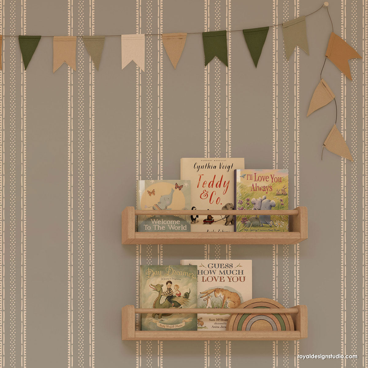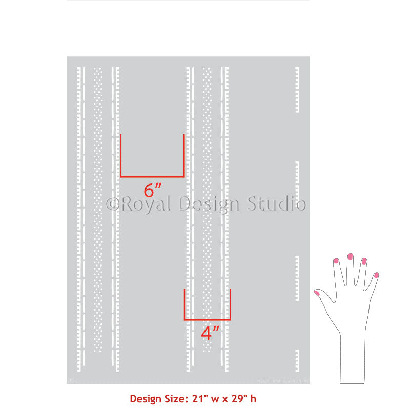 A lovely stripe wall stencil that can compliment so many decor styles: modern, global, Cottage Core and Farmhouse. Our Liam Stripe Stencil is so versatile it can work almost anywhere to create a custom wallpaper look in your home-at a fraction of the cost! You can stencil this design very quickly and easily in the paint colors that work perfectly in YOUR room. Have fun using complimentary or contrasting paint colors in the center area of the stripe.