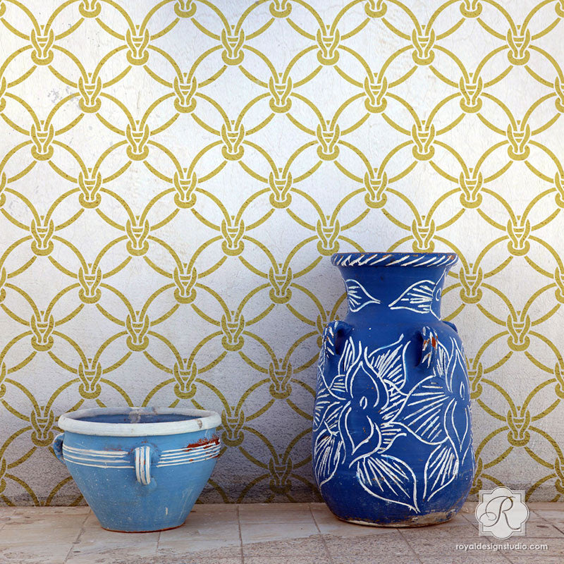 Macrame, the art of knotting cords and rope together, was a huge hit back in the ’70s with DIY-ers. Now, you can create the same look with our Macrame Knots Wall Stencil and give your bohemanian style room and accent wall a warmy woven feel. If you are stenciling fabric or furniture, use the Macrame Knots Furniture Stencil.