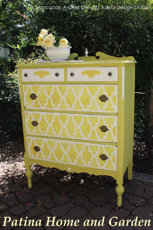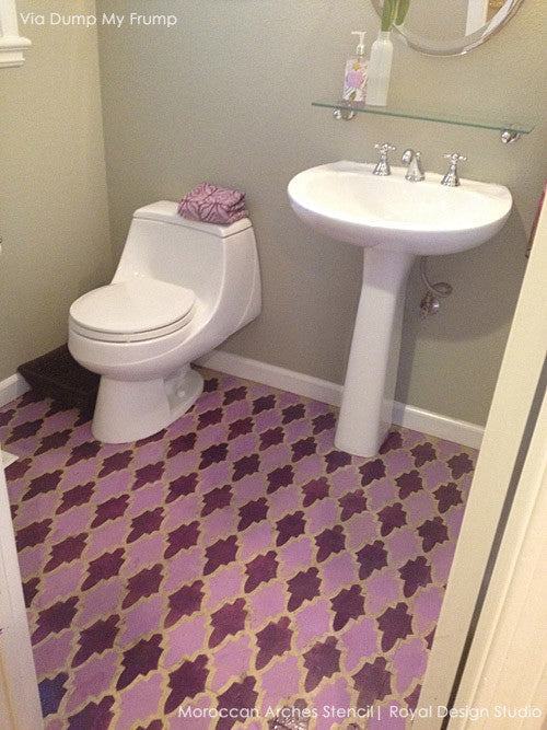 This is one of our most popular Moroccan wall stencils. The Moroccan Arches Allover Wall Stencil is based on a classic Moroccan Zelij tile design. All of our allover and damask stencil patterns feature an easy stencil registration system, allowing you to repeat these stencils across your wall perfectly every time. This stencil includes a FREE ceiling filler stencil element to finish the pattern easily at your ceiling line. This exotic pattern can also be used as floor stencils, such as the bathroom floor one of our talented customers painted! Also available in a smaller furniture size: Moroccan Arches Furniture Stencil.