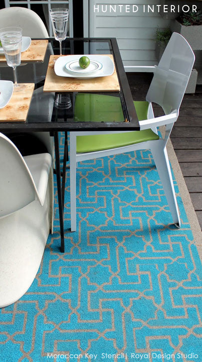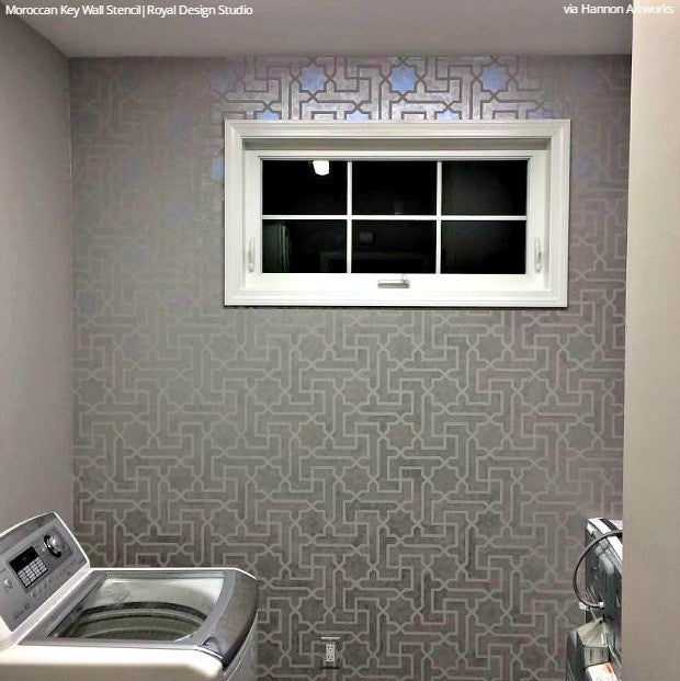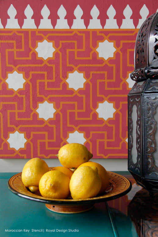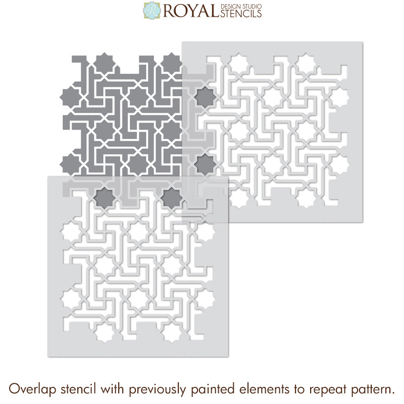 This geometric furniture or wall stencil pattern combines both geometric and star designs in one beautiful design! The Moroccan Key Stencil makes stunning accent wall in any contemporary room and on rugs, floors and even curtains! For your small DIY projects, check out the Moroccan Key Craft Stencil.