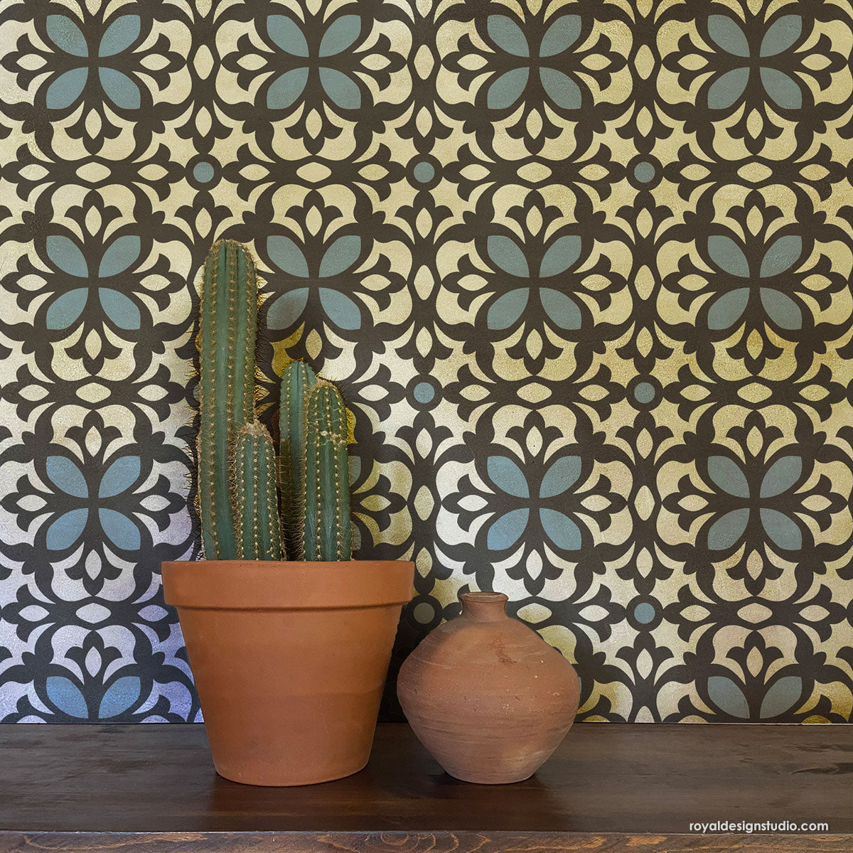 This Alicante Tile Stencil is also available as Alicante Tile Allover, for stenciling large areas quickly!