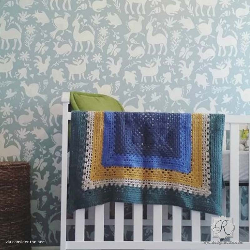 Get lost in the folk art themes of our Otomi Folk Art Wall Stencil. Inspired by the richly embroidered textiles of the Mexican design of the Otomi people, this stencil is a great way to add a bold accent to your space. This large allover animal pattern is a great for accent walls or a large piece of furniture. Your project is sure to stand out with this unique stencil design! Use our Otomi Folk Art Furniture Stencil for smaller furniture DIY projects. To decorate scrapbooks and small DIY projects with a similar look, use our Otomi Folk Art Craft Stencil.