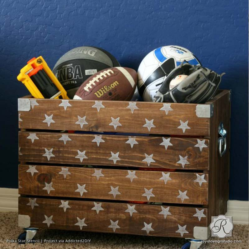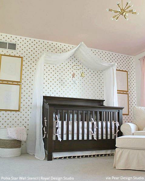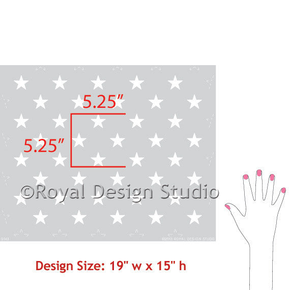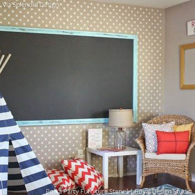 Perfect for the Fourth of July, our Polka Stars Allover Stencil is a playful star pattern motif ideal for a child's room or anywhere you want to add a fun Polka Star Wallpaper look! For eight and eleven point star pattern, use our Starry Night Stencil.