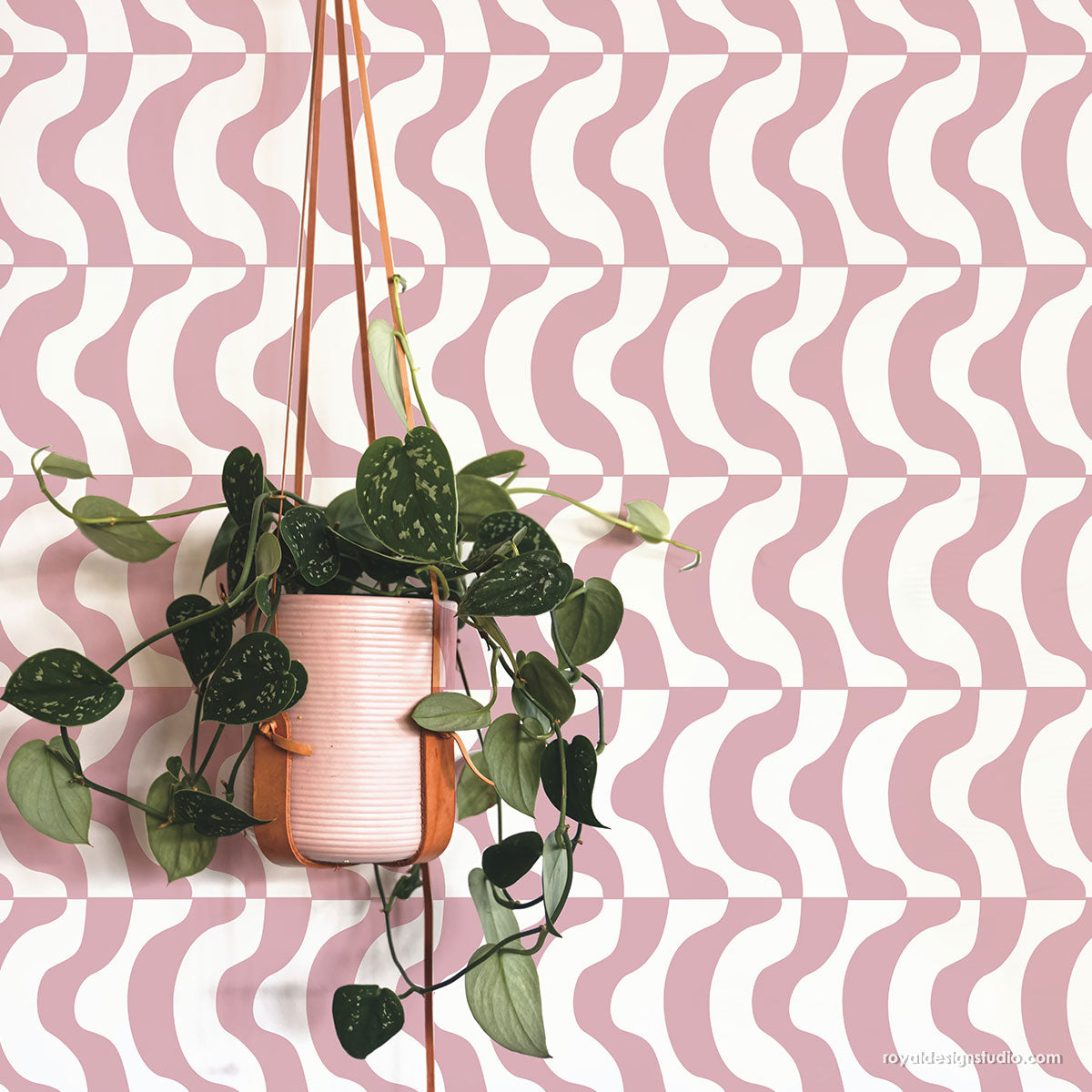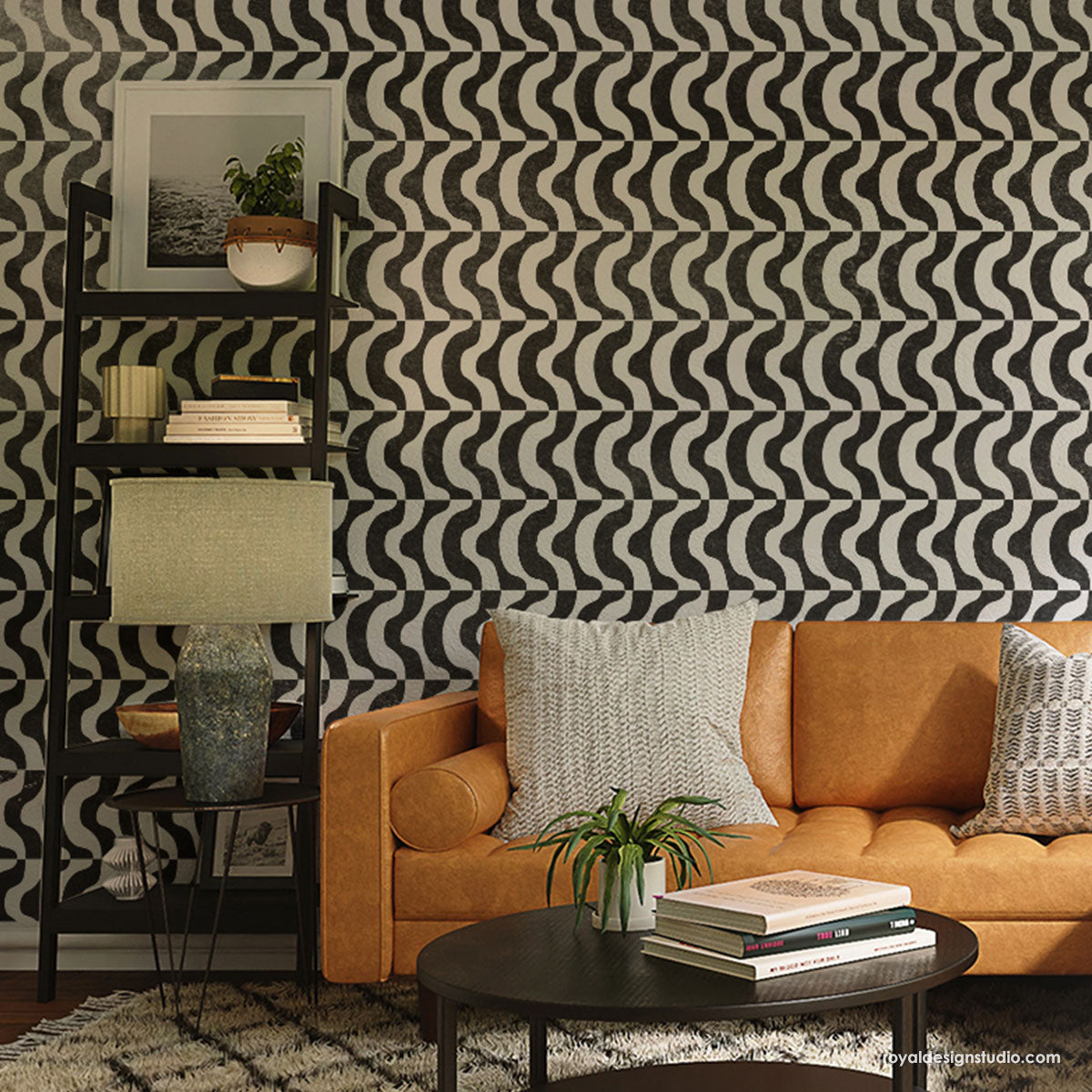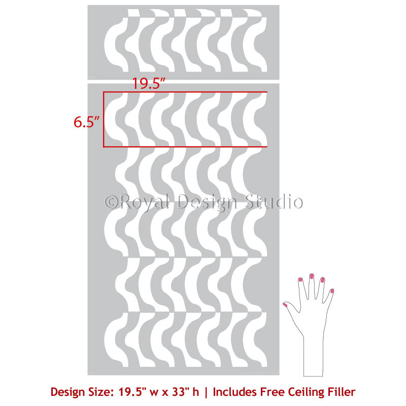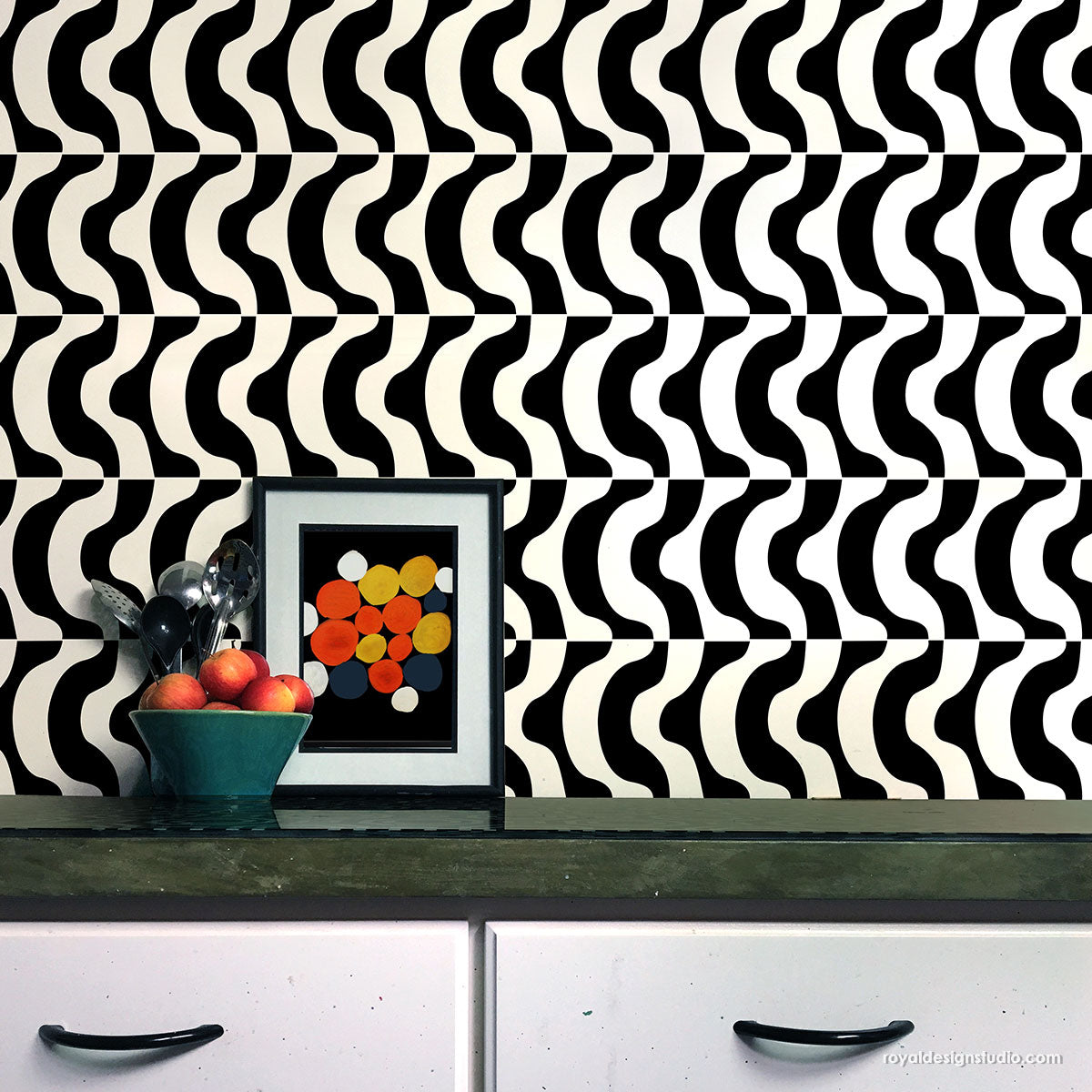 Add a groovy, vintage wallpaper vibe to your walls with our Relections Modern Wall Art Stencil. This curvy, geometric design is ideal for stenciling a dramatic feature wall with a custom pattern that stands out from the ordinary. Why wallpaper when you can DIY it for less??
