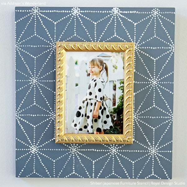 Whether you are painting a dresser or table top, our smaller scale furniture stencils are up for the job! The Shibori Japanese Furniture Stencil decorates your stencil projects with Asian patterns that have a geometrical feel. The dotted pattern will give your stenciled space the look of traditional Shibori (or Japanese tie-dye fabric) patterns. Use the Shibori Japanese Wall Stencil for a large accent wall.