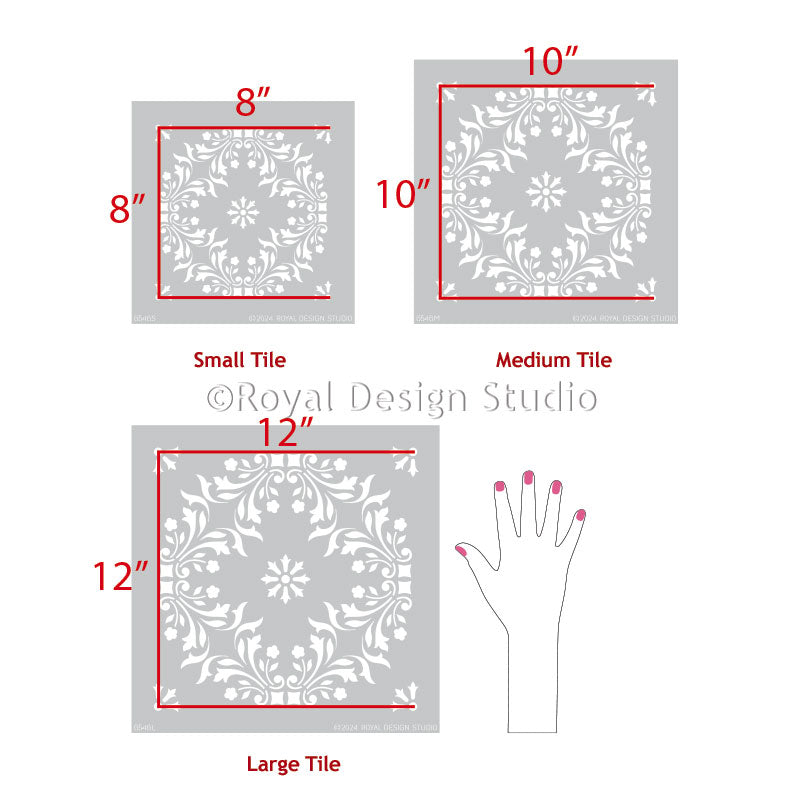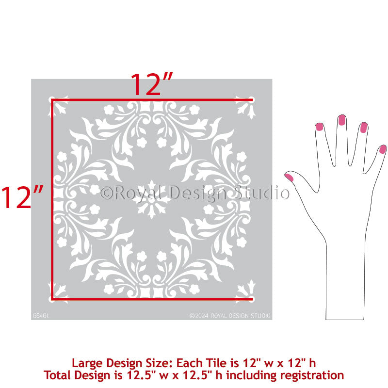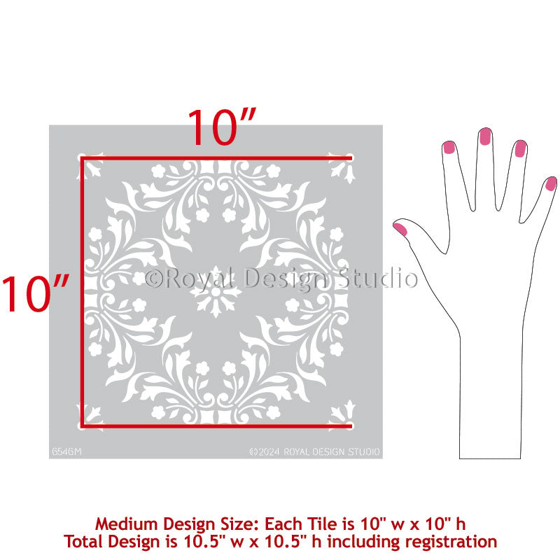 A delicate and lovely tile pattern stencil inspired by a classic Portuguese tile design. Use the Sintra Tile Stencil to add a delicate pattern to existing primed and paint tiles-or create your own tile look on walls, floors and backsplashes. Offered in 3 stencil sizes to accommodate your next DIY stenciling project.