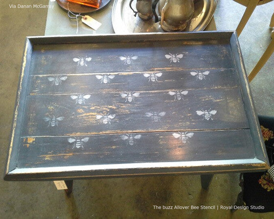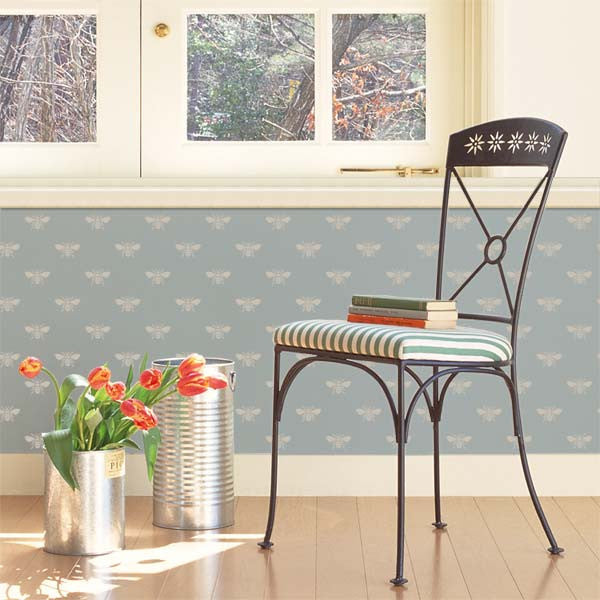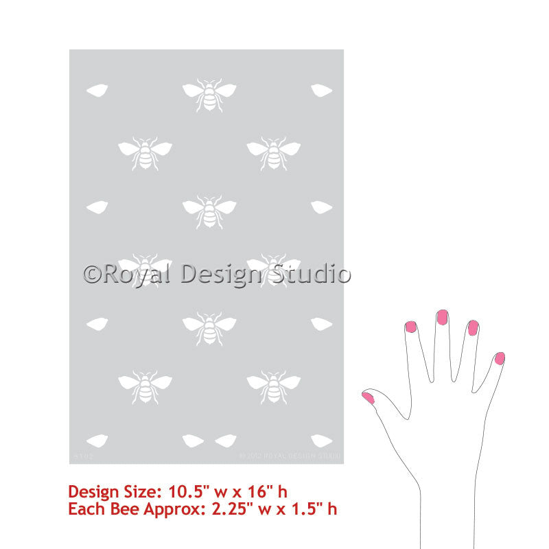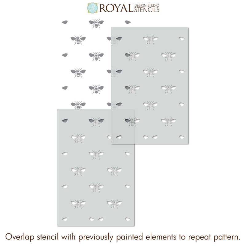 This allover wall or furniture stencil, the Buzz Allover Bee Wall Stencils features a classic Napoleonic Bee motif repeated in a grid pattern. Perfect to stencil on furniture pieces or a wall and is also adorable for stenciling in a nursery in bright colors! Finish off the cute pattern with other bee inspired designs such as our Honeycomb Allover Wall Stencil, French Bee Trellis Stencil, and Beehive Allover Furniture Stencil.