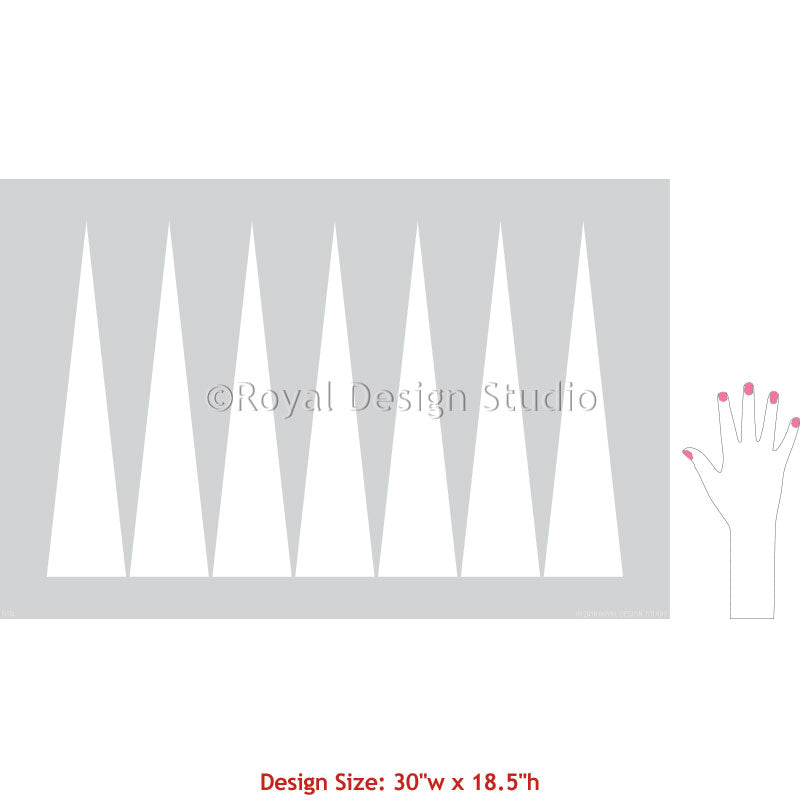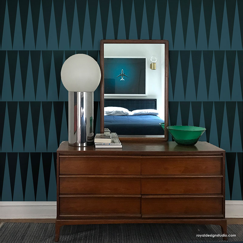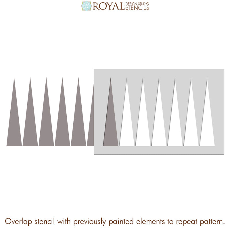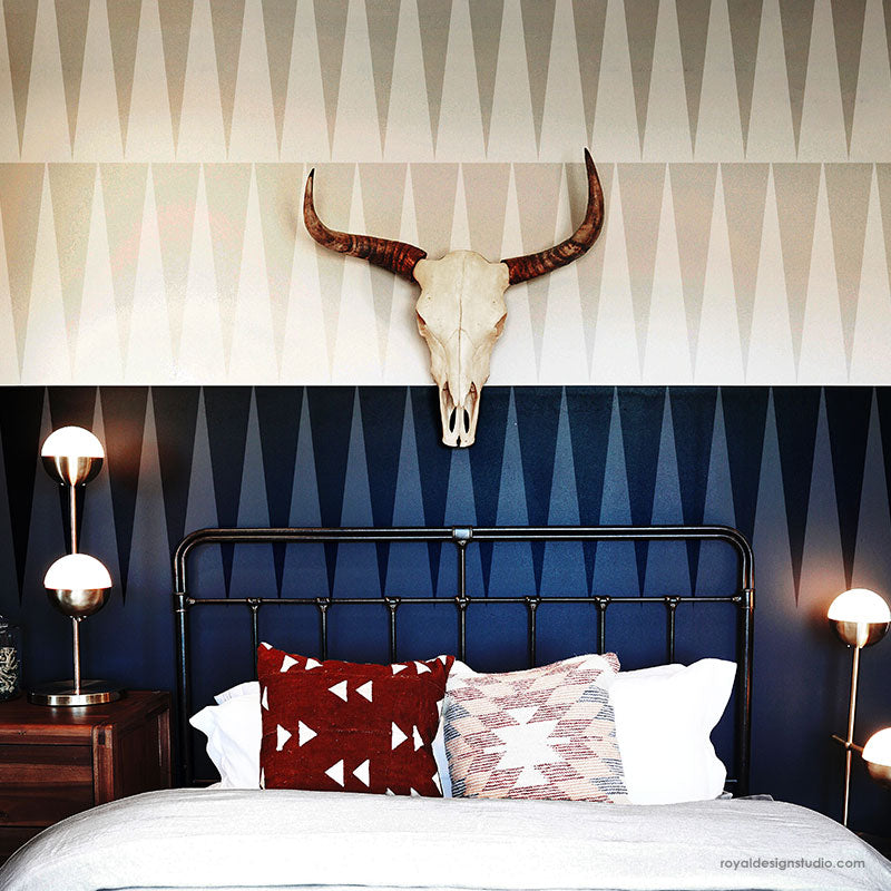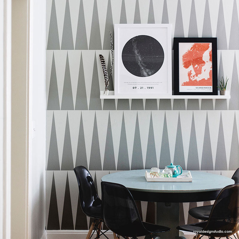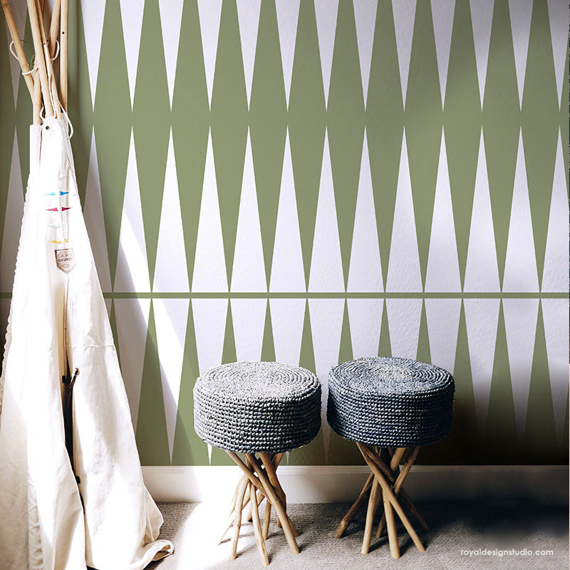 Wall stencils give you the freedom to create custom wall decor that is as unique as you! The To The Point Triangles Stencil can be used in so many ways. You can paint it on you wall as a triangle border stencil or a repeated modern wallpaper pattern. You can even turn the modern stencil around to and create a whole new diamond wall design!