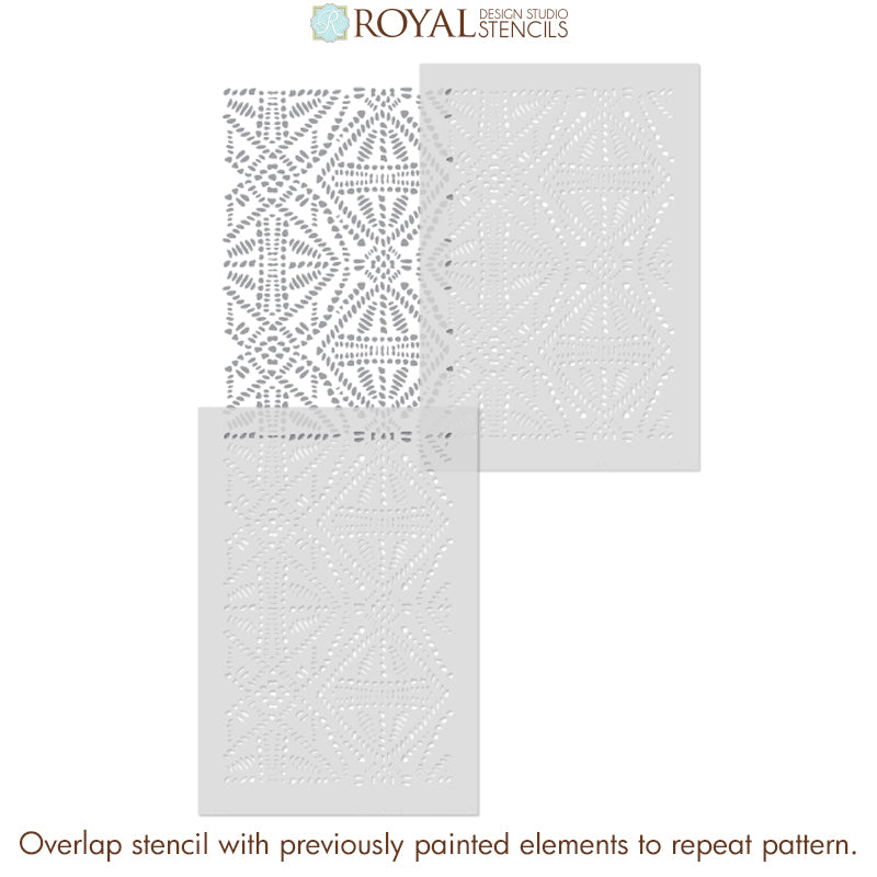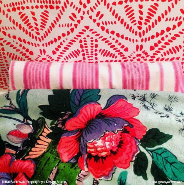 An exotic tribal-inspired stencil with a modern global design, the Tribal Batik Furniture Stencil is perfect for both wall and painted furniture projects such as tables, doors, and cabinets. Use our Tribal Batik Allover Wall Stencil for larger DIY projects such as bedroom, living room, or dining room walls.