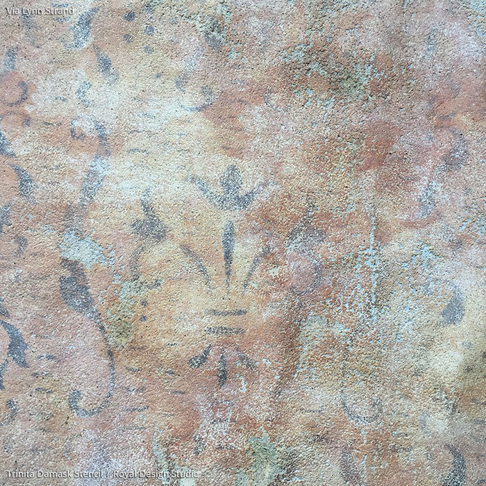 Florentine artist, Alison Woolley, was inspired to create the Trinita Damask Wall Stencil from a old painting in a museum in Siena, Italy. Based on a beautiful renaissance fabric worn by Saint Catherine of Alexandria, this pattern has an Old World style that can be translated in so many ways. Whether you use multiple colors or a neutral color scheme, this unique, intricate pattern brings a designer wallpaper look to your walls.