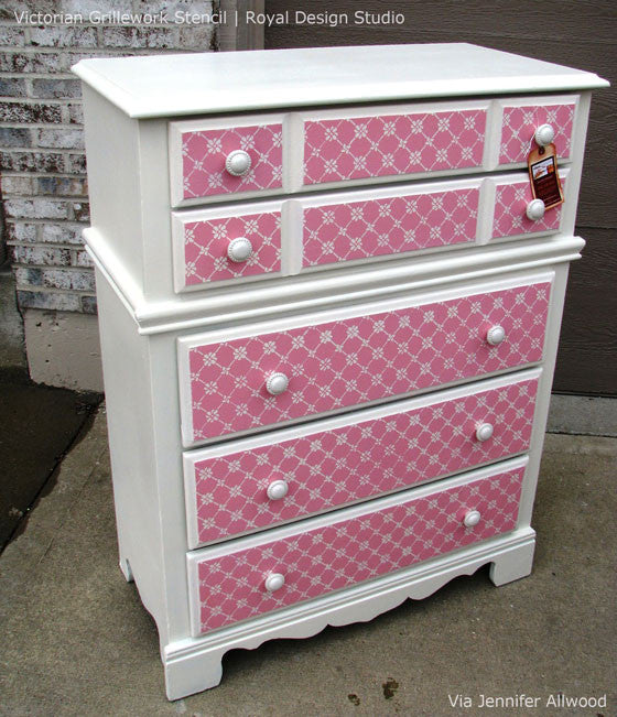 The Victorian Grillework Stencil is reminiscent of European decorative grating of metal used as a divider or barrier - perfect for stenciling glass or a door!