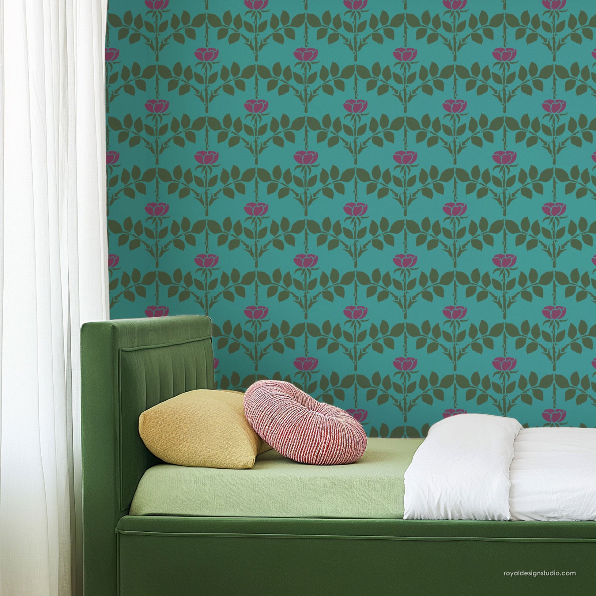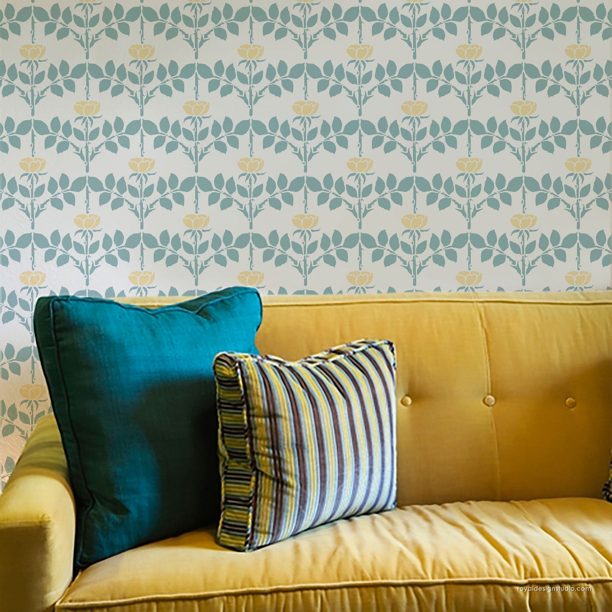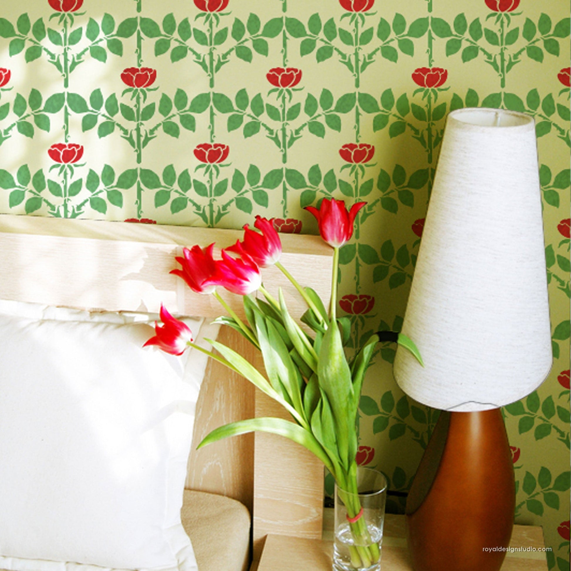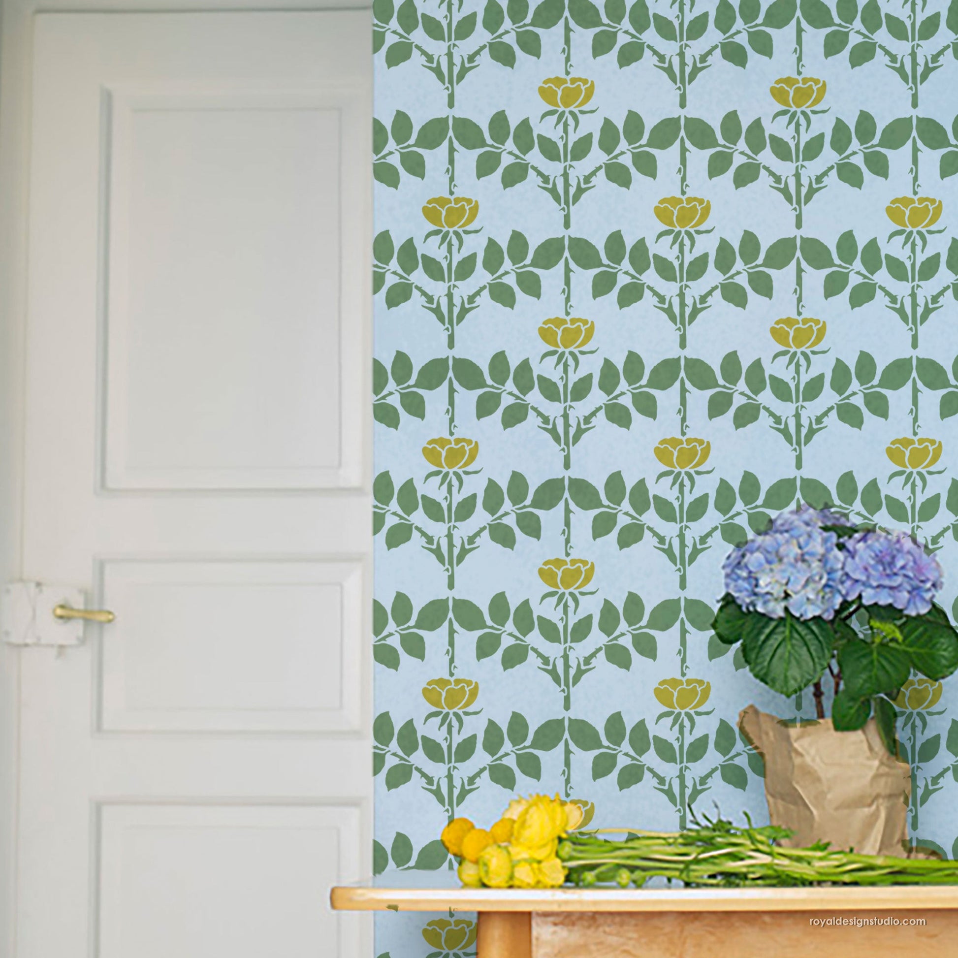 This pretty floral stencil pattern is easy to stencil and create a custom wallpaper look in your home.